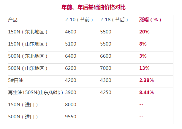 可谓之:没等到许多人年后正式开业,基础油行情价格就早已经涨高了。